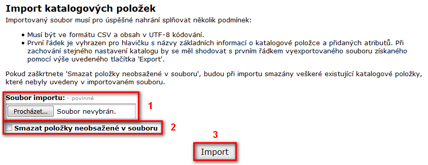 1) Klikněte na 'Procházet' a vyberte soubor katalogových položek