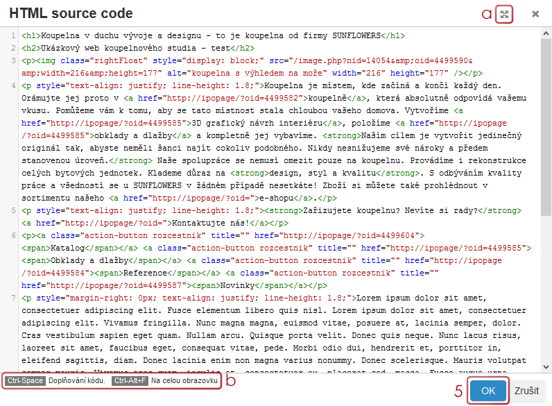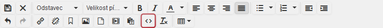 3) Kliknutím na ikonu 'Zdrojový kód' otevřete HTML editaci
