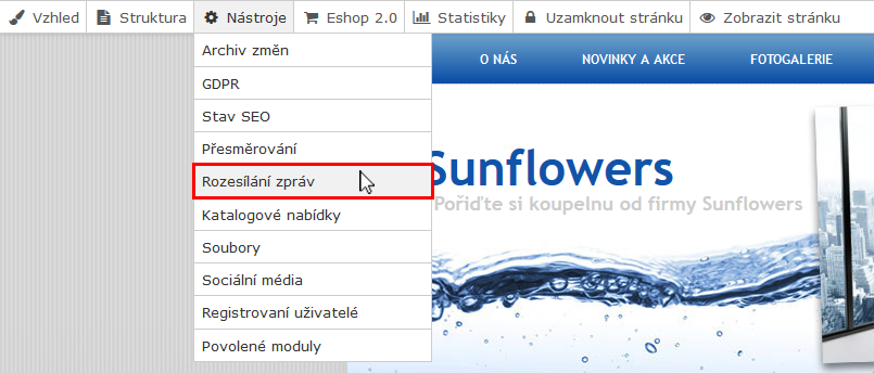 2) Na vrchní nástrojové liště vyberte 'Nástroje' -> 'Rozesílání zpráv'.