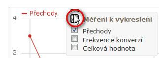 Najetím kurzoru na ikonku 'Měření k vykreslení' lze upravovat zobrazovaná data v grafu.