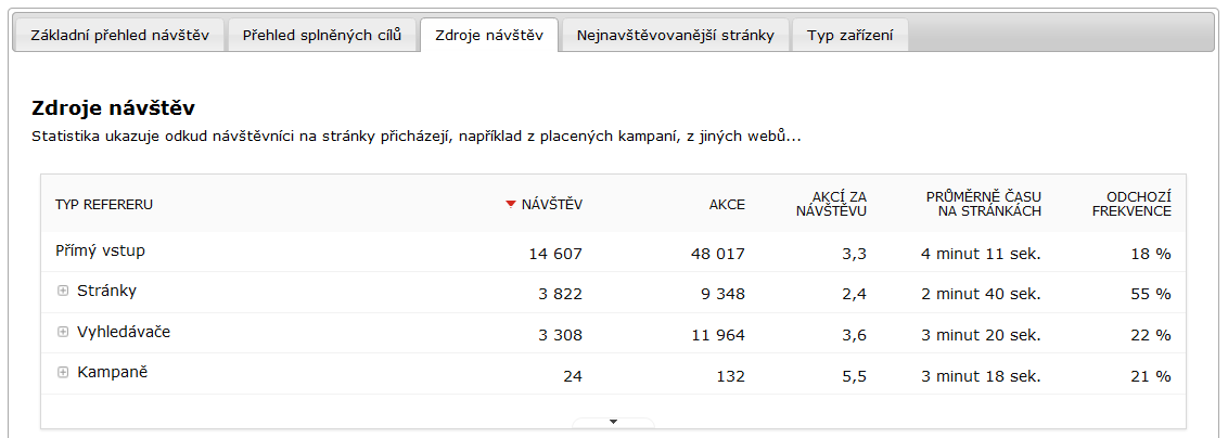 Statistika ukazuje, odkud návštěvníci na stránky přicházejí, například z placených kampaní, z jiných webů.