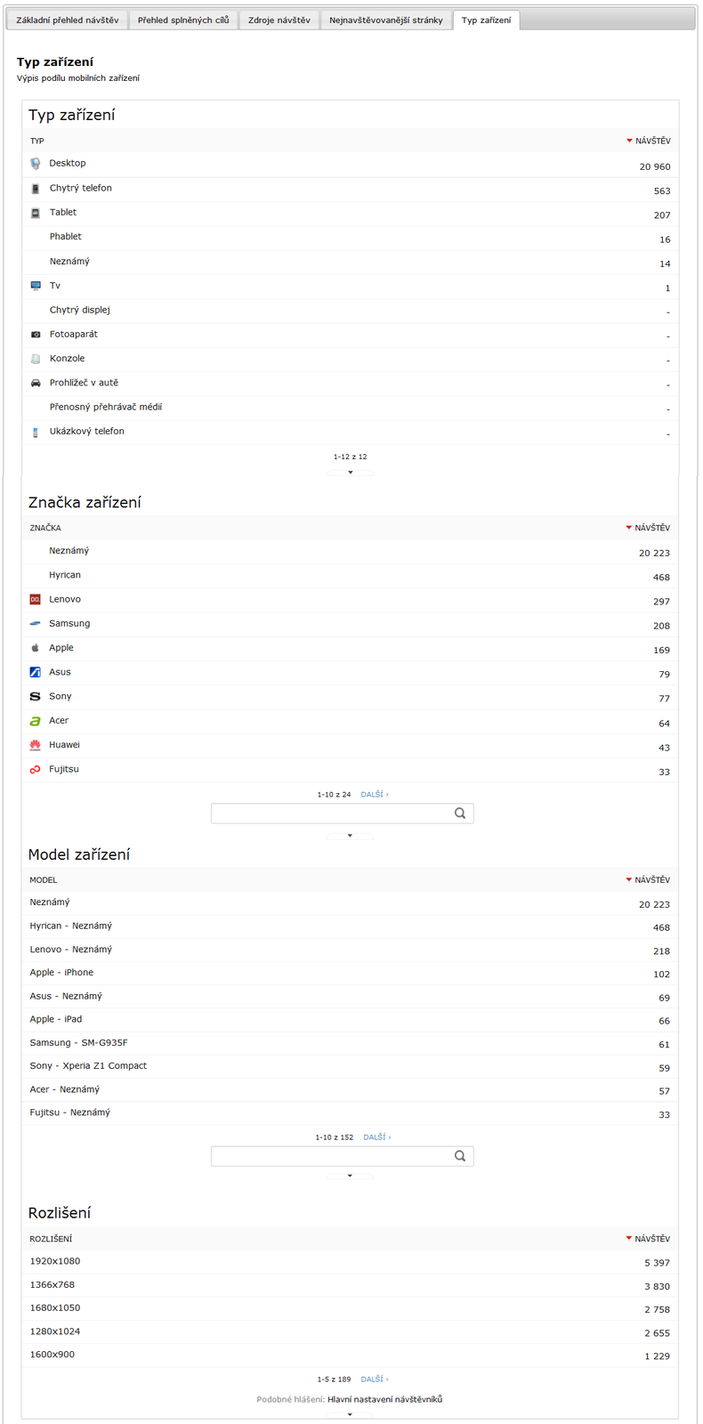 Pro zobrazení je nutné mít založené Piwik statistiky - návod na jejich založení je zde. Pokud máte založeno, naleznete zde 5 tabulek:
