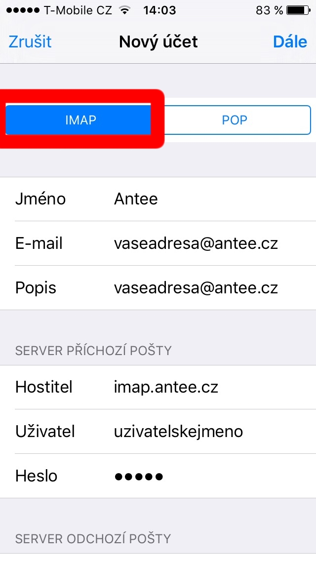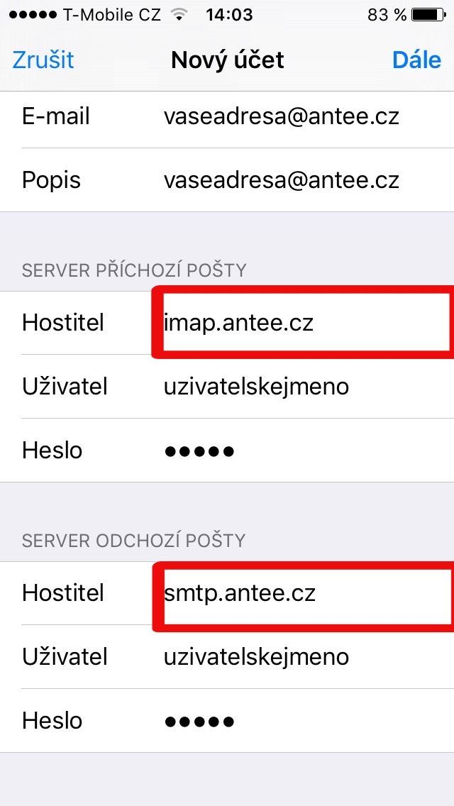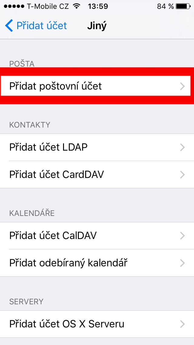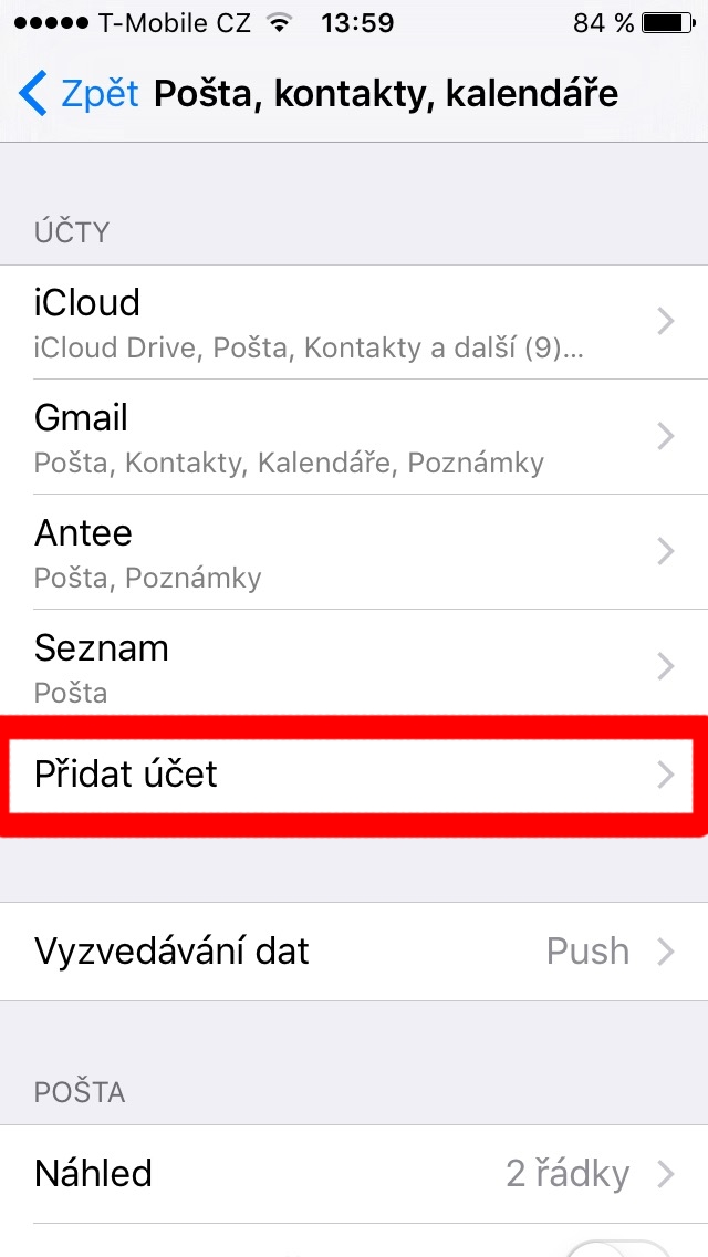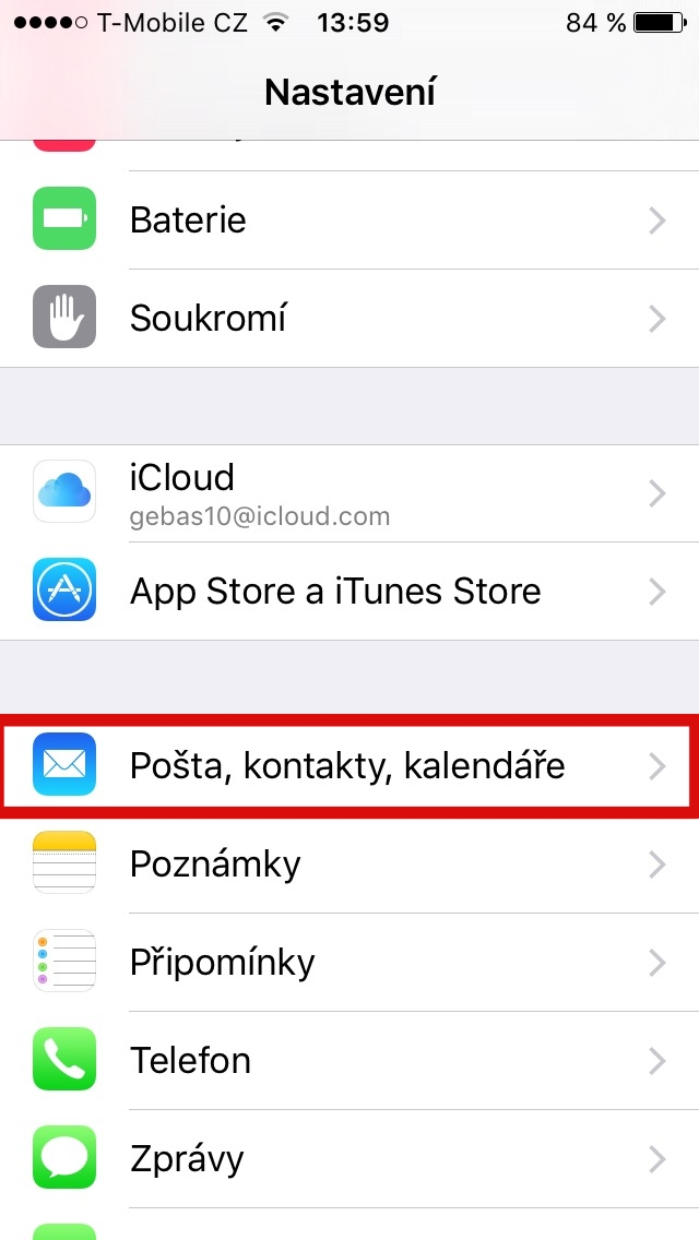 Pro nastavení emailu v mobilní telefonu Iphone postupujte takto: