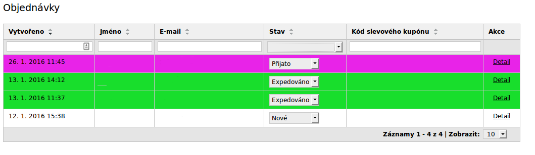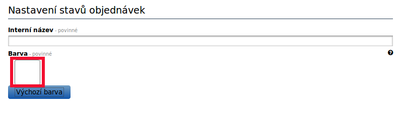 Kliknutím na ikonu pod nadpisem Barva je možné stavu objednávky nastavit vlastní barvu. V sekci 'Eshop 2.0 - Objednávky' lze jednotlivé objednávky barevně odlišovat, na základě vyplnění stavu.