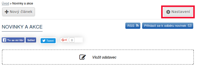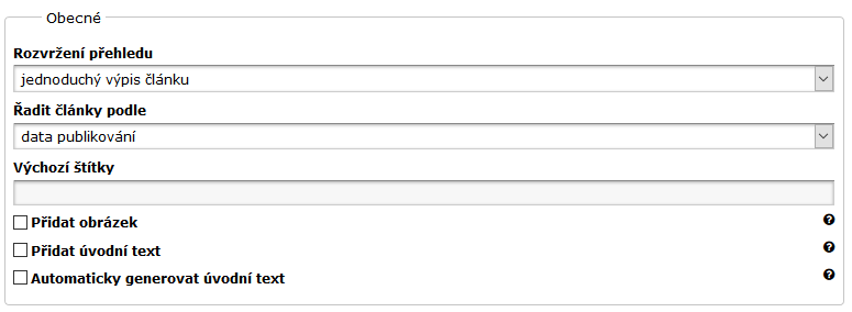 Přidat obrázek - Umožňuje nastavit pro každý článek obrázek, který se bude zobrazovat v přehledu.