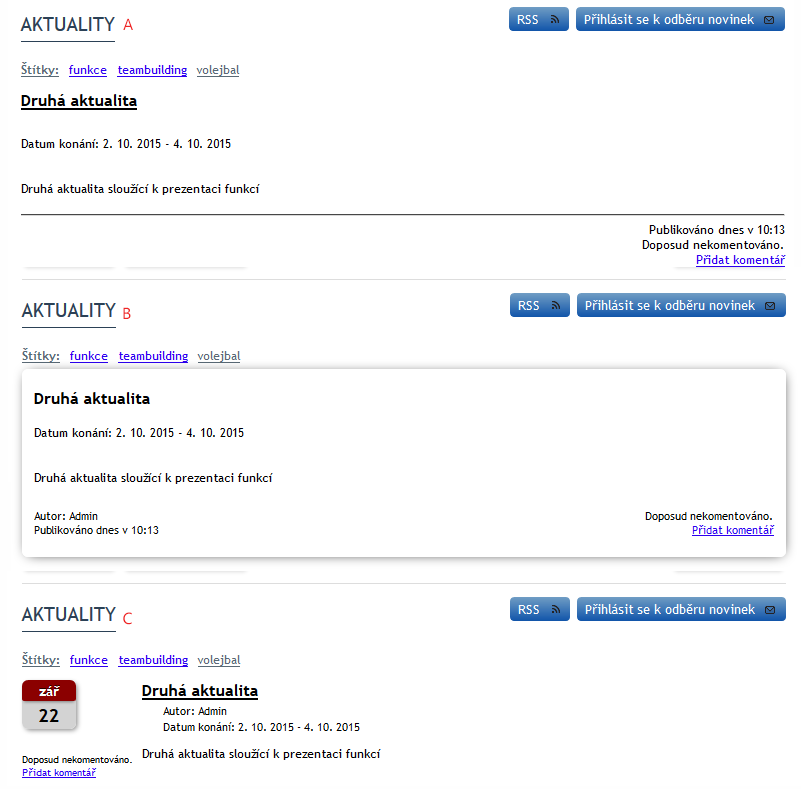 Rozvržení přehledu - Zobrazení článků v přehledu aktualit