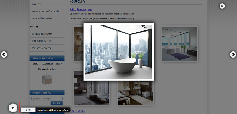 - Časovač slideshow - čas automatické změny obrázku ve slideshow