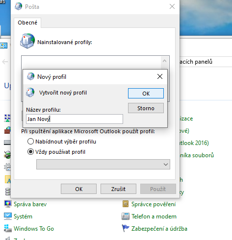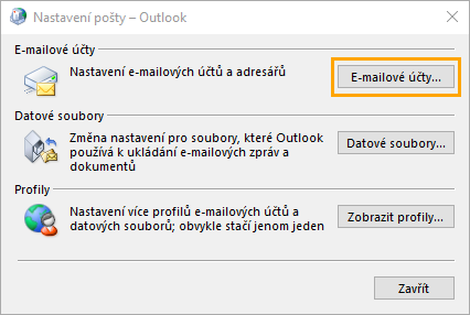 Tento návod slouží k propojení emailu s poštovním klientem Outlook 2010, 2013 a 2016.