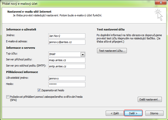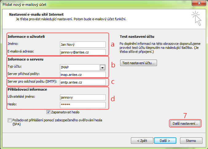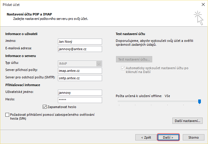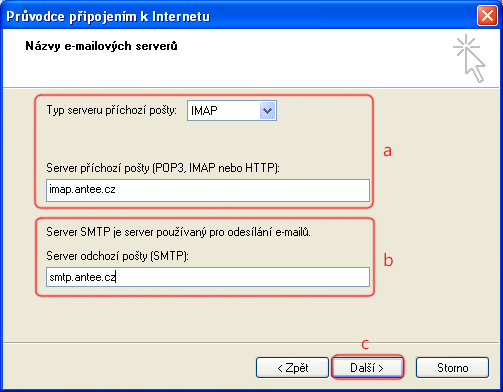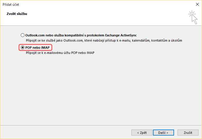 V tomto kroku se musíte rozhodnout, zda budete používat port pro příchozí poštu IMAP nebo POP3.
