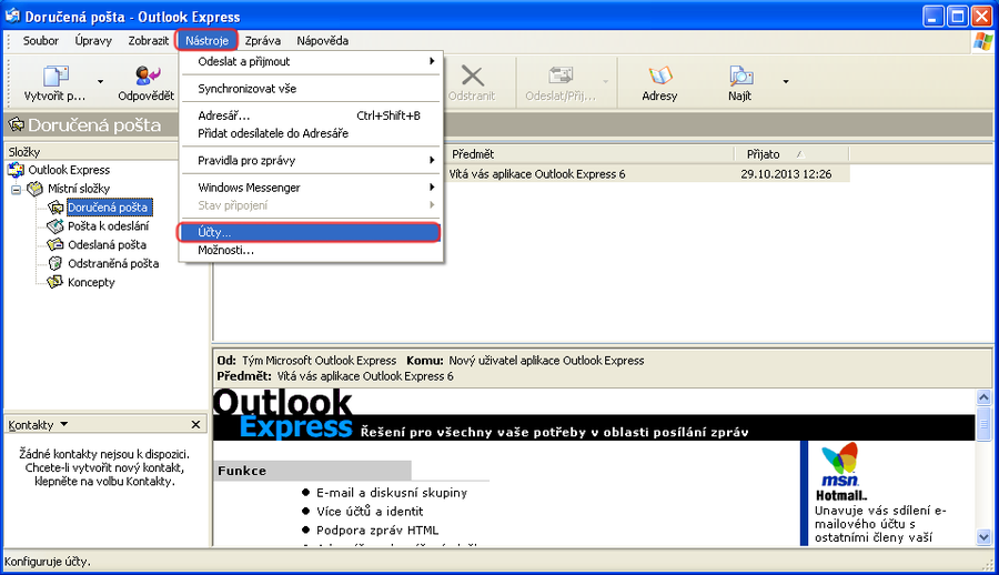 Tento návod slouží k propojení emailu s poštovním klientem Outlook Express.