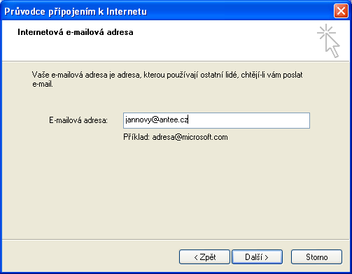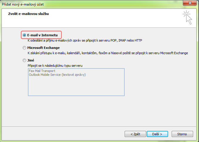 5) Zaškrtněte 'E-mail v Internetu' a klikněte na 'Další'