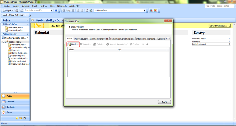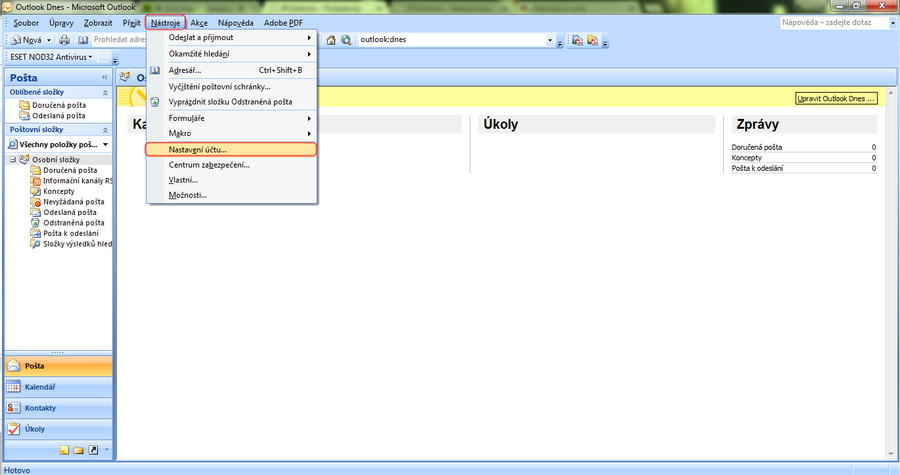 Tento návod slouží k propojení emailu s poštovním klientem Outlook 2007.