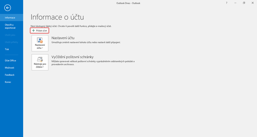 Tento návod slouží k nastavení emailu pro verzi Outlooku 365/2019.