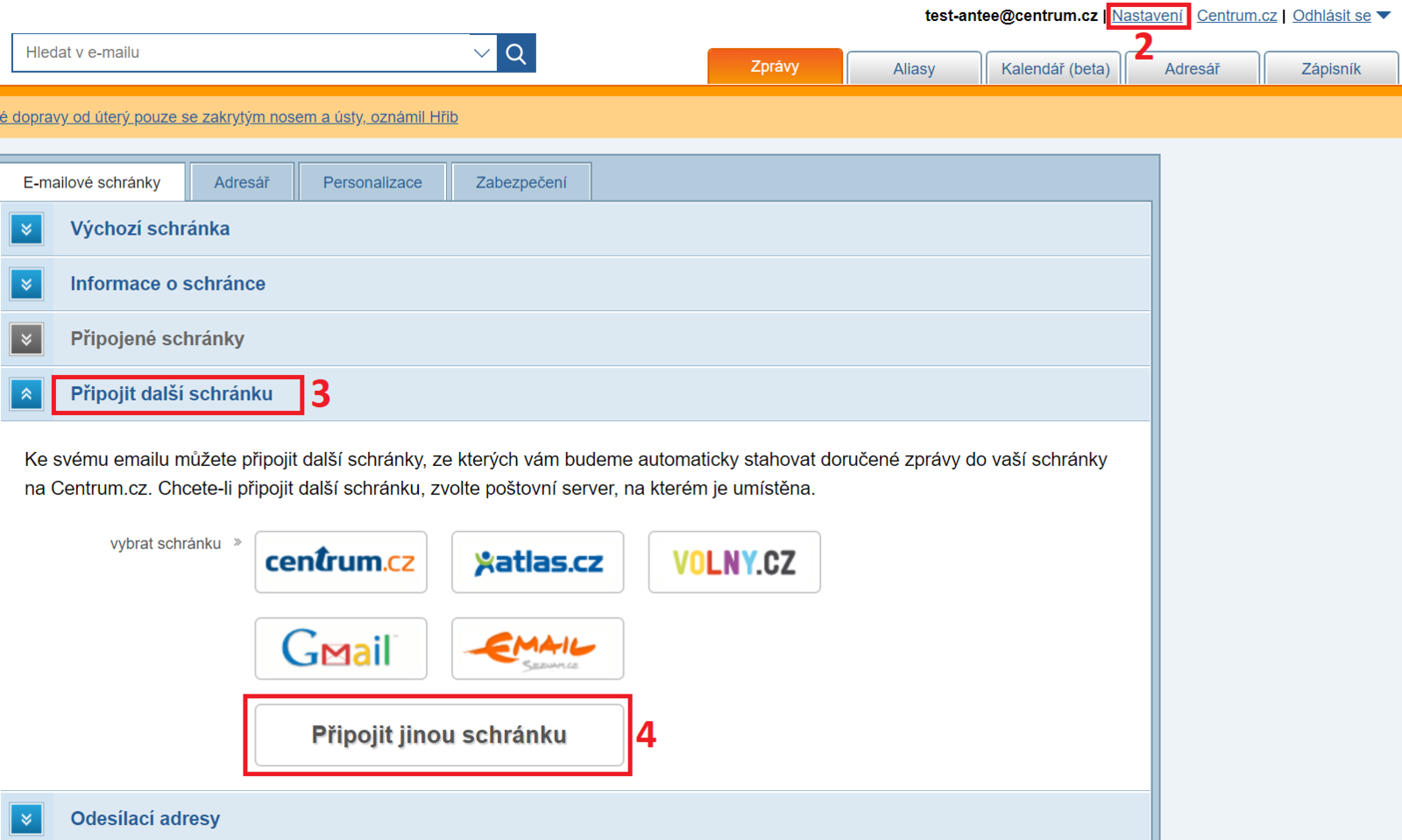 3) Klikněte na 'Připojit další schránku'.