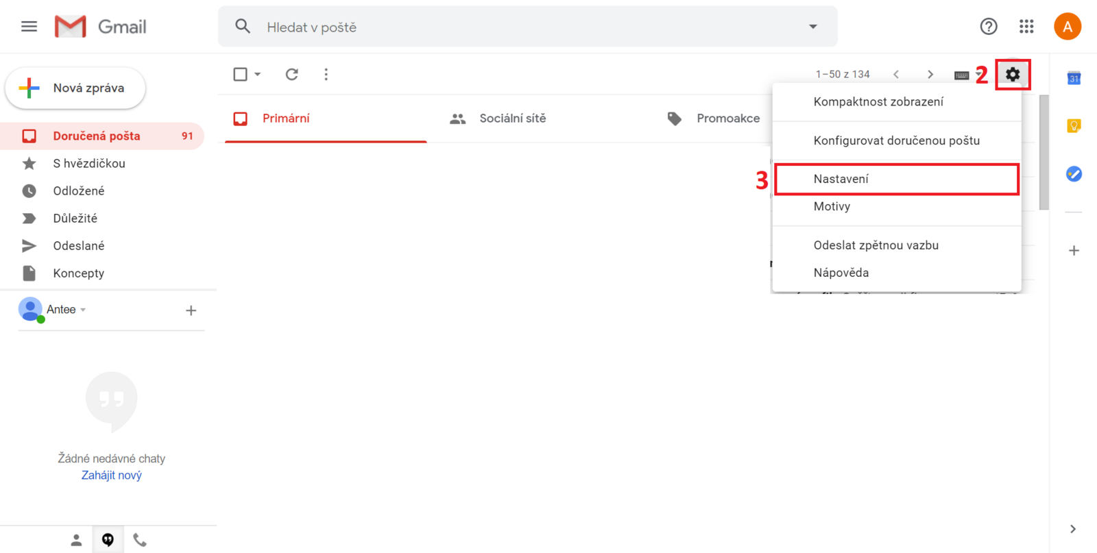 1) Přihlašte se do svého emailového účtu na gmail.com, na který chcete přeposílat zprávy.