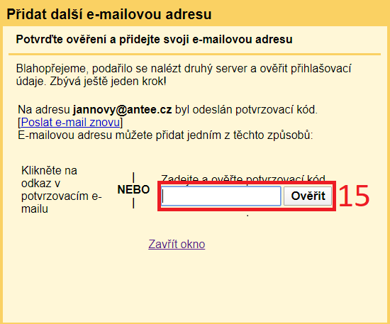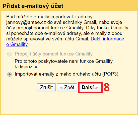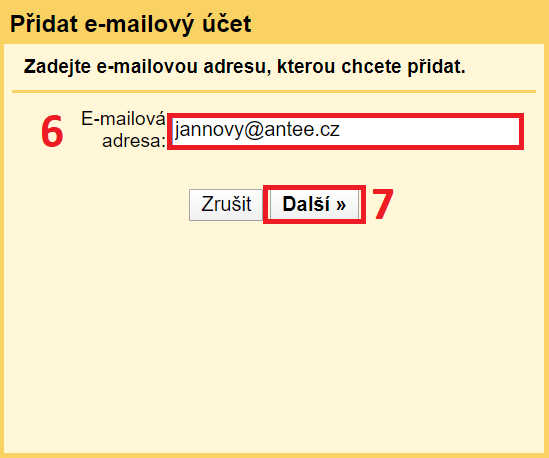6) 'E-mailová adresa' - Vyplňte emailovou adresu, ze které chcete přeposílat emaily.