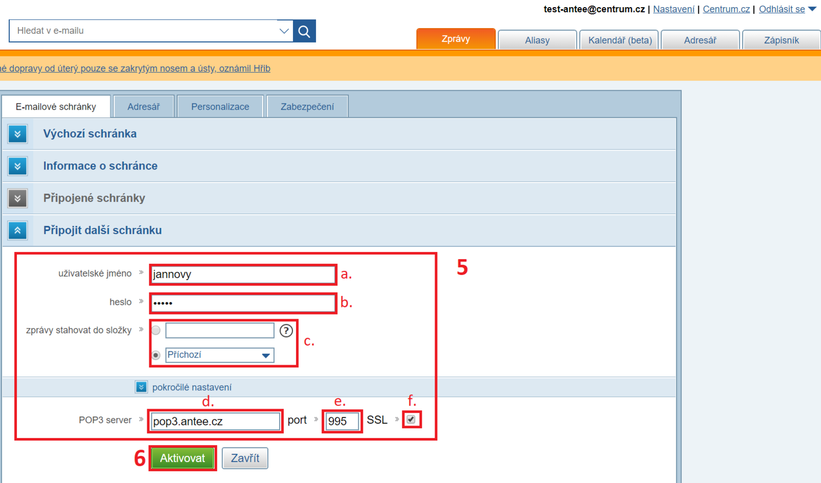 Upozornění: Stáhne se vám veškerá doručená pošta z propojovaného emailu. Pokud máte v této složce emaily, pomíchají se s nově staženými.