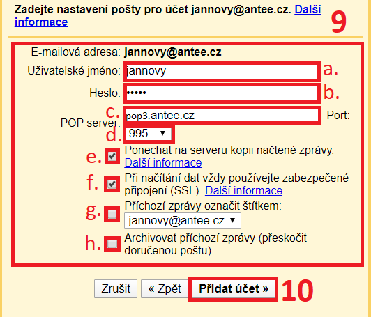 9) Vyplňte pole následovně: