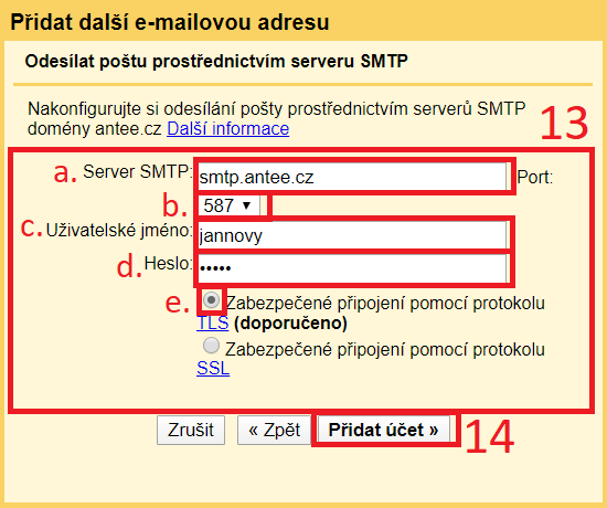 13) Vyplňte pole následovně: