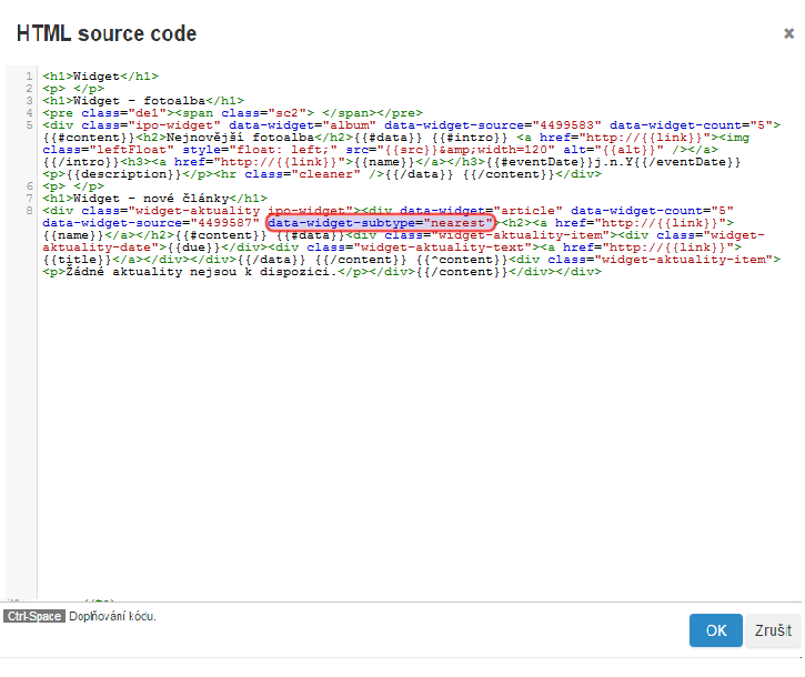 Pozn. v případě že data-widget-subtype není ve widgetu uveden, musíte ho vytvořit.