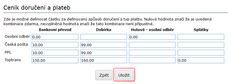 5) Nový ceník potvrďte kliknutím na 'Uložit'