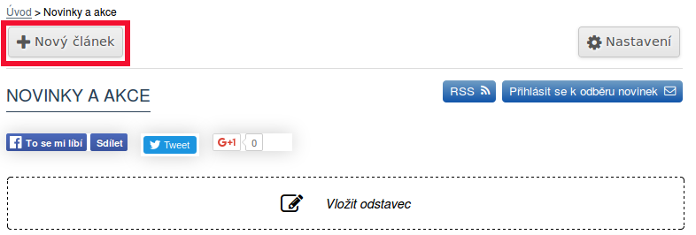2) Otevřete si stránku Aktualit (jak vytvořit stránku s aktualitami se dozvíte zde)