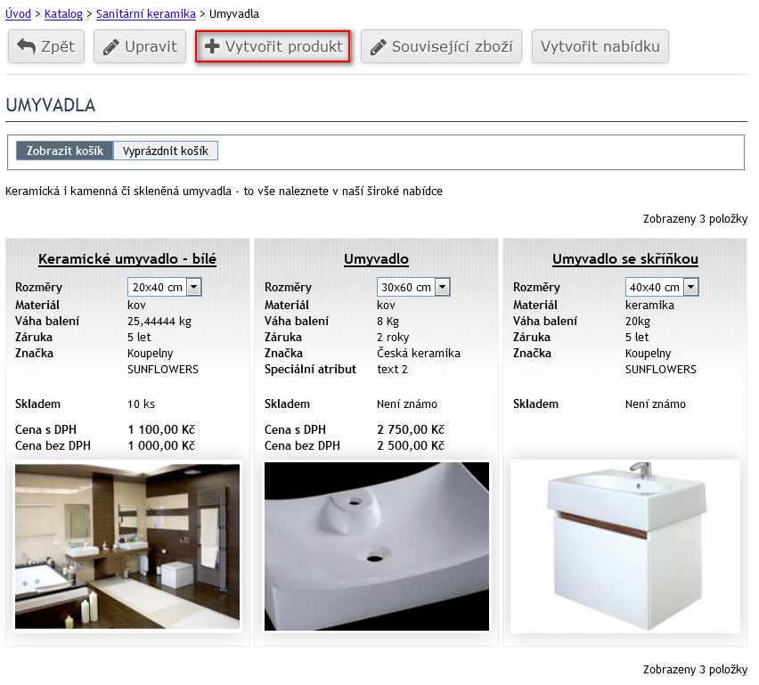 2) Otevřete si katalog a přejděte do konkrétní kategorie, kam chcete novou položku přidat