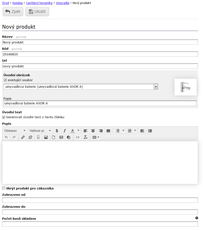 - Zobrazeno od - Datum od kdy se má produkt zobrazovat v nabídce. Pokud není vyplněno produkt se zobrazí ihned.