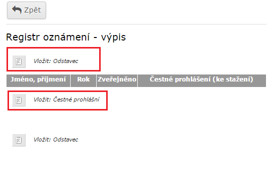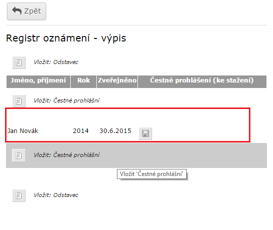 5) Čestné prohlášení je vloženo, uvidíte ho v registru oznámení.
