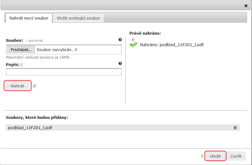 V případě, že chcete k oznámení přiložit existující soubor(y):