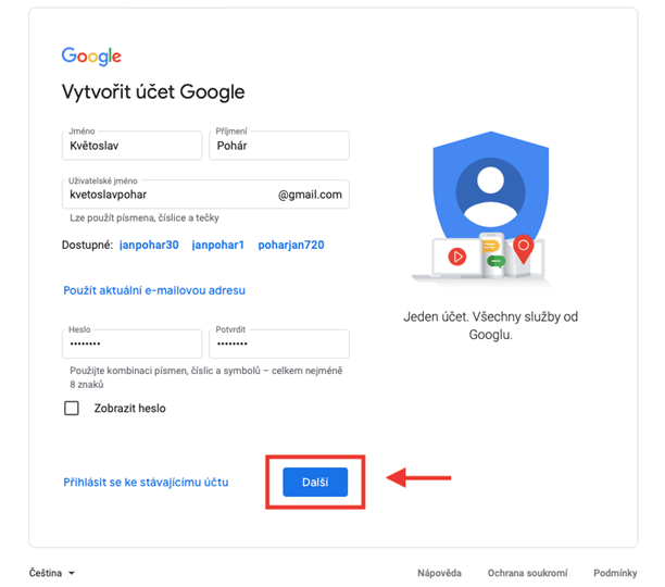 Úvod > Návody-old > E-maily > Sdílení složek Googlu > Vytvoření Google účtu