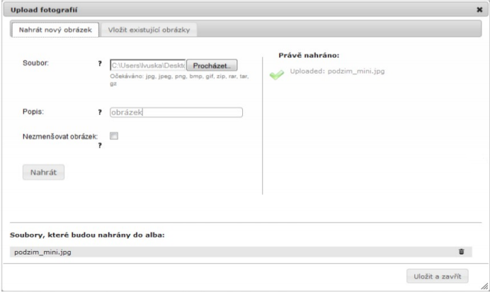 5) Po vložení všech fotografií klikněte na 'Uložit a zavřít'.