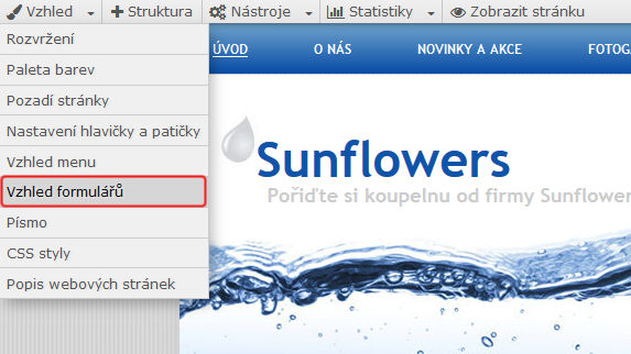 2) Na vrchní nástrojové liště vyberte 'Vzhled' -> 'Vzhled formulářů'