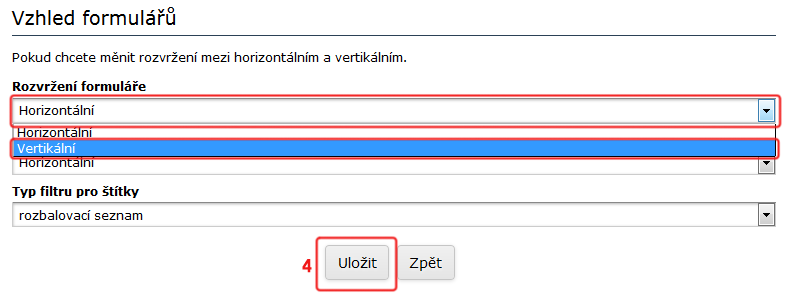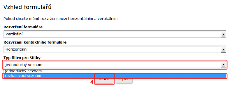 3) Můžete změnit původní nastavení typu filtru - jednoduchý seznam na rozbalovací seznam