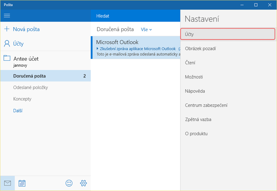 Tento návod slouží k propojení emailu s poštovním klientem Pošta (Pošta a Kalendář).