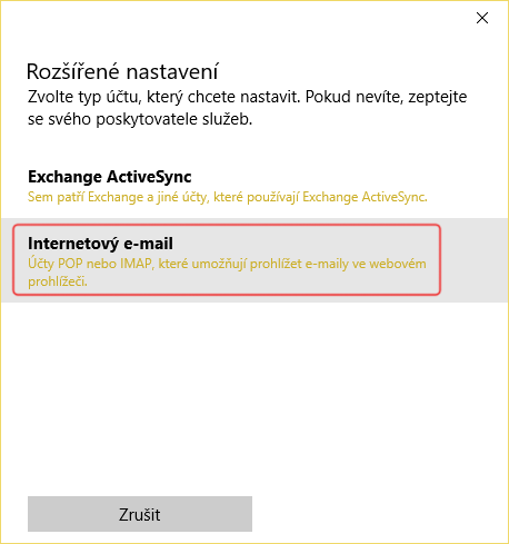 V tomto kroku se musíte rozhodnout, zda budete používat port pro příchozí poštu IMAP nebo POP3.