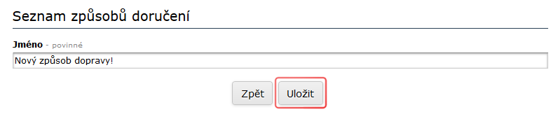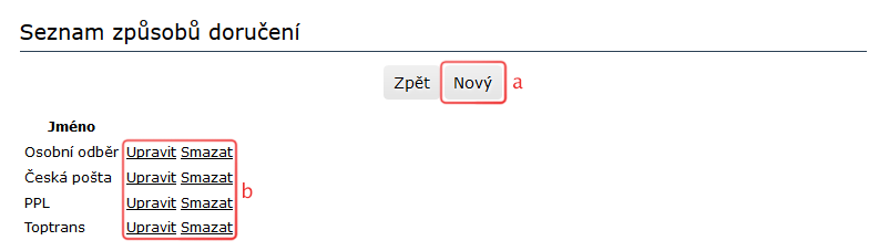 3) Zobrazí se seznam již vytvořených způsobů doručení.