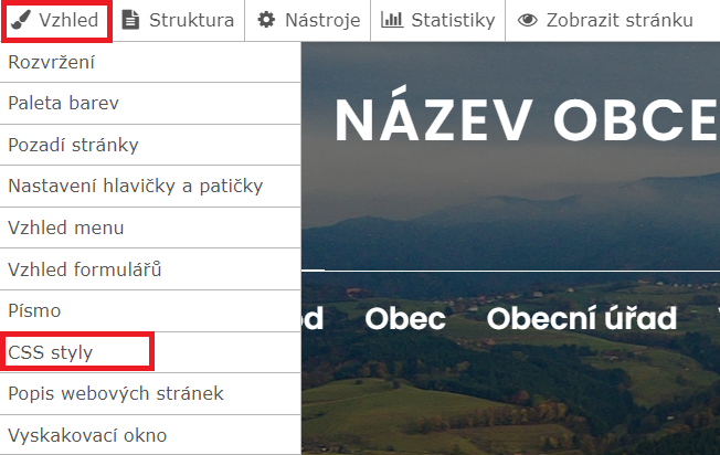 2) Na vrchní nástrojové liště vyberte Vzhled - CSS Styly.