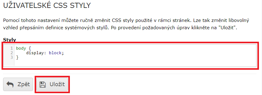 3) Proveďte požadované úpravy a uložte tlačítkem Uložit na konci stránky, nebo klávesovou zkratkou CTRL + S.