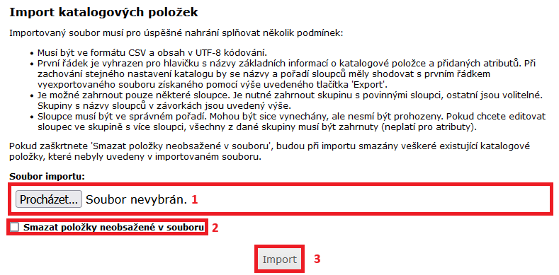 2) V případě, že chcete aby se staré položky, které nejsou obsažené v novém .csv souboru odstranily, zaškrtněte políčko