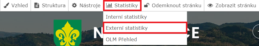 2) Na horní liště zvolte Statistiky - Externí statistiky.
