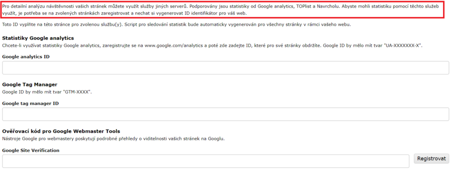 Na konci externích statistik povolte Piwik tlačítkem Založit.