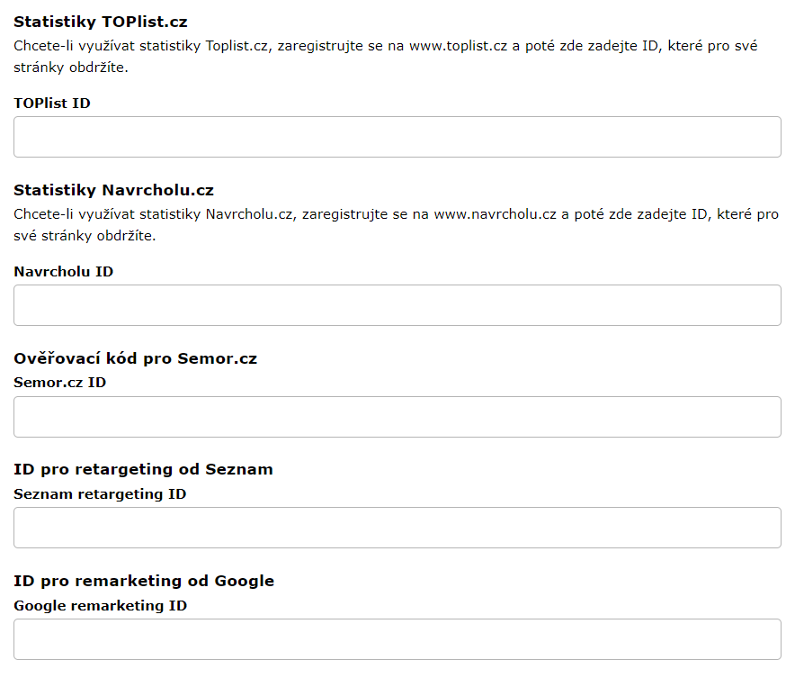 3) Dále postupujte dle návodů u polí pro vložení kódu