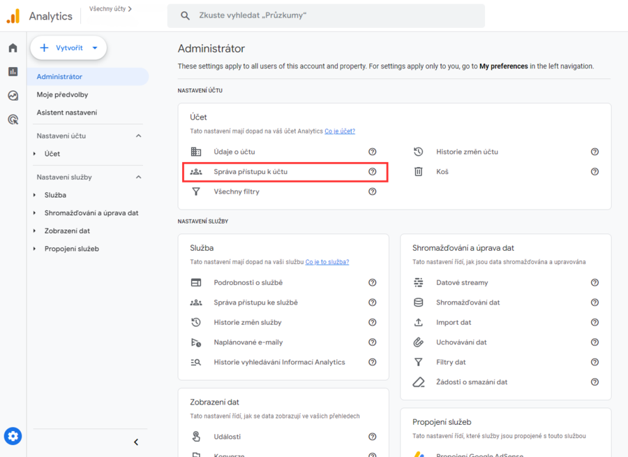 Ve správě vašeho účtu vyberte Správa přístupu k účtu.