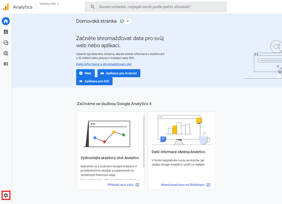 Po přihlášení klikněte na odkaz Správce (ozubené kolečko), který se nachází v levém dolním rohu stránky.