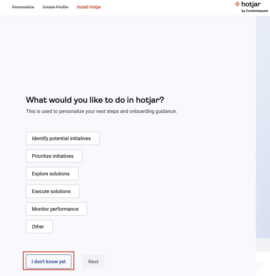 Na stránce insights.hotjar.com/register se zaregistrujete.