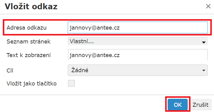 4) Na e-mailovou adresu jde nyní kliknout (text je podtržený).