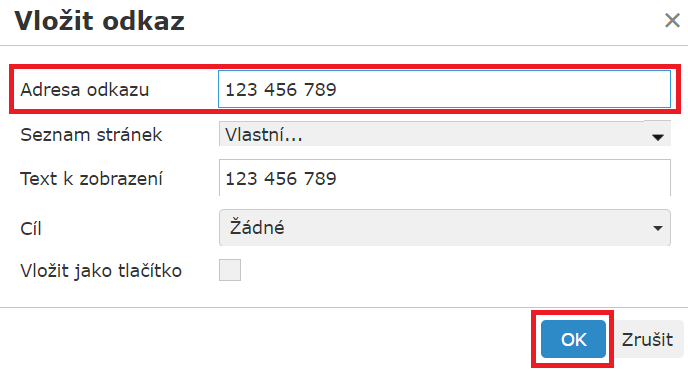 Postup u telefonního číslo je naprosto totožný jako u e-mailu.