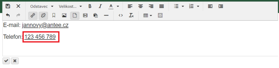 5) Klikněte na ikonku fajfky pro uložení úprav.