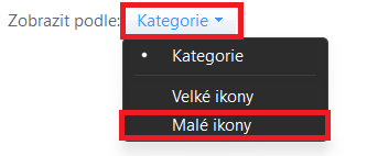 3) V sekci kategorie zvolte možnost Malé ikony.